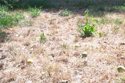 We walked out to the garage and checked it out, but it's just a two-car garage, with few surprises. It held a refrigerator that Fred thought might come with the house, and a gas-powered lawnmower that looked hefty enough to take care of the overgrowth. There's a green belt immediately surrounding the house, and the rest of the yard is typical California golden brown. And coming soon to the other side of the back fence: horses! Horses, I'm told, make good neighbors. |