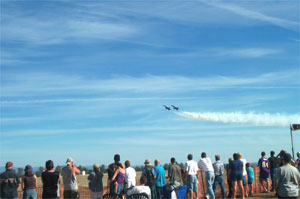 The small stunt planes that opened the show put on a spectacular daredevil display of aerobatics, doing loops and stalls that defied belief (and gravity). We're a good audience, and we ate it up. The "ooohs" and "ahhhs" were genuine expressions of awe and respect.